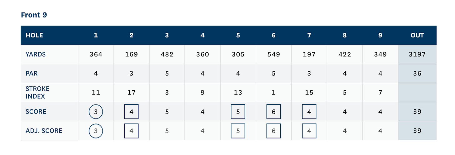 I’ve kind of settled back into the high 80s and low 90s, with a mid-90s round being a “bad round.” Hopefully, we have reached some stasis in the game.